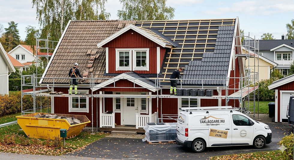 En takomläggning är berättigad till ROT-avdrag. Under 2026 gäller: